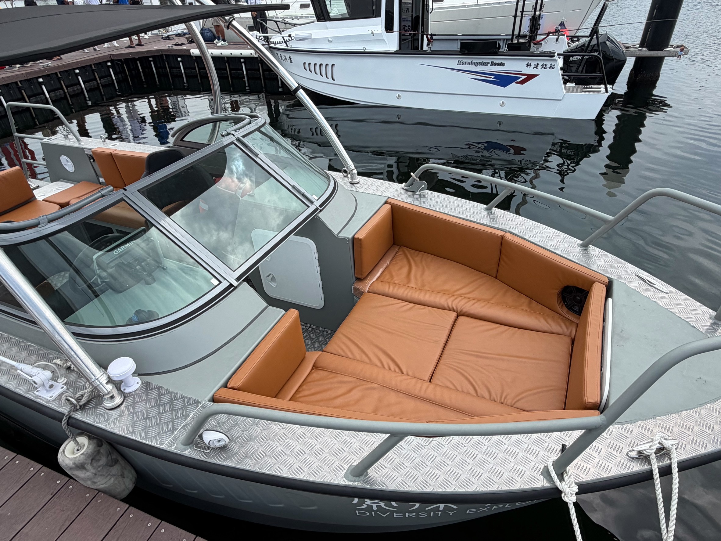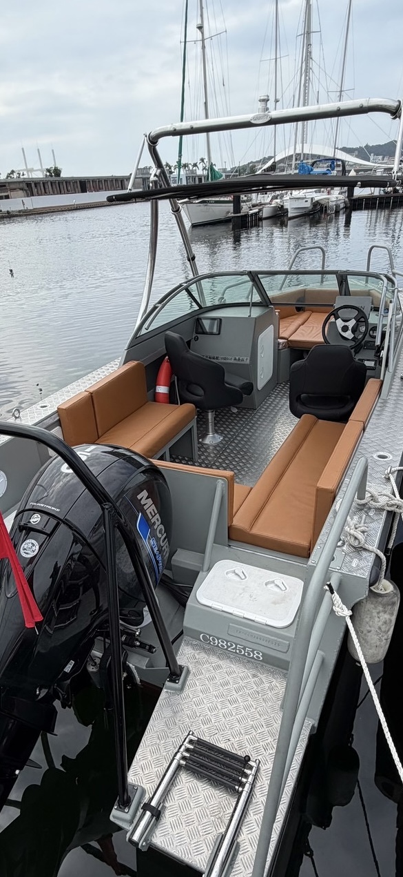2024全新規格快艇擁有更大的空間設計以及機動性的升級為了重度休閒玩家設計選配『專業滑水架』搭配寬板滑水。藉由拉著繩索倚靠船的動力在水面上滑行,一邊滑水一邊欣賞一望無際的海景,享受著海上乘風破浪的暢快感。